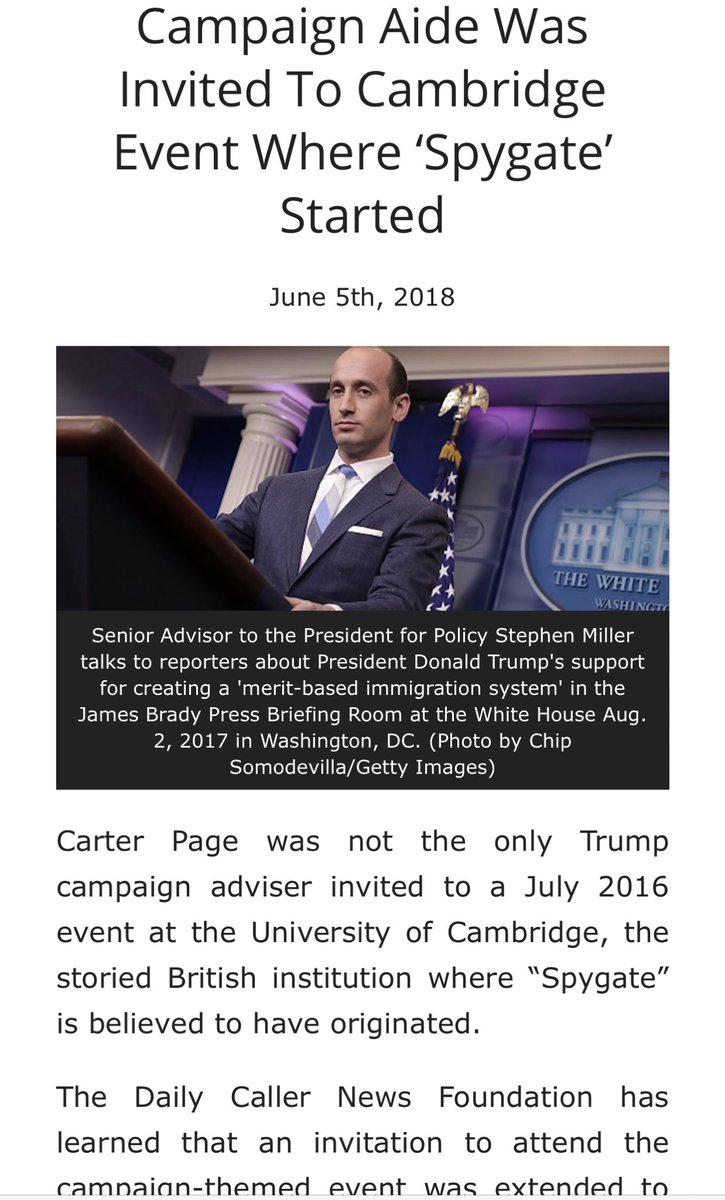 Another campaign advisor CIA/FBI spy Halper targeted was Stephen Miller. The mysterious Steven Schrage, Halper’s “student” with deep CIA connections invited both Page and Miller to the Cambridge conference where Spygate started in July 2016. /8