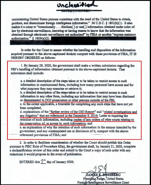 It appears the DOJ is trying to get the FISA reauthorization passed before the FISC declassifies the corrective action outlined from the prior court order. This response would also include information about the “sequestering” of evidence gathered as a result of the now admitted fraudulent and misrepresented information within the FISA applications.