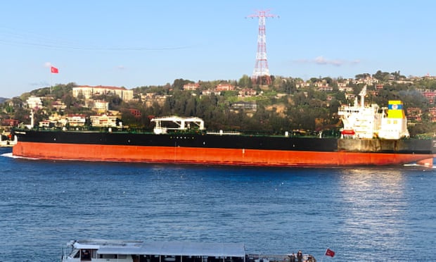 One of the seized ships, the Greek-flagged oil tanker, Prudent Warrior, is seen as it sails past Istanbul, Turkey, in 2019