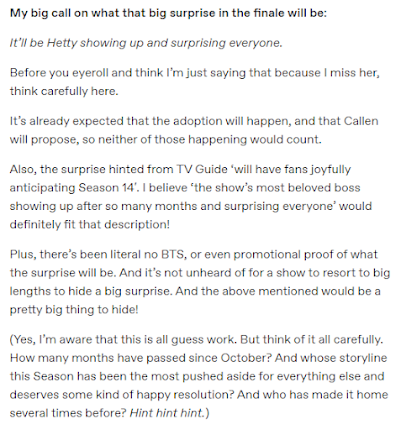 With no more political related news to keep me occupied for the rest of the week, I'm back in my 'won't stop thinking about what that surprise needs to be on Sunday' mindset.