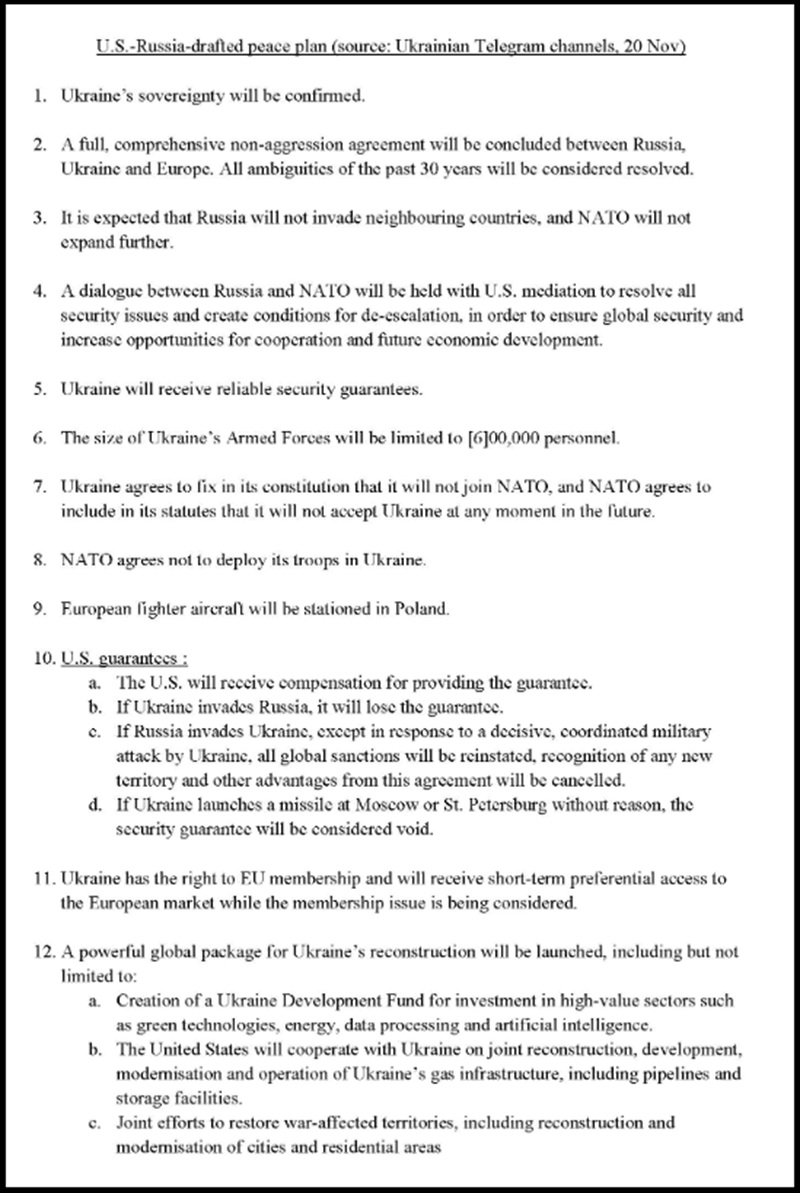 •Both countries will agree to abolish all discriminatory measures and guarantee the rights of Ukrainian and Russian media and education. (Note: Similar ideas were incorporated into Trump’s 2020 Israel-Palestine peace plan).