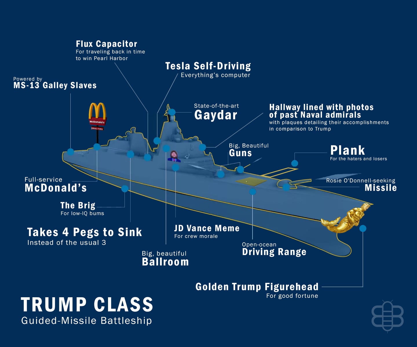 President Trump announced an exciting new Trump-class battleship that will be the largest, fastest, and most powerful battleship fleet in the world.
