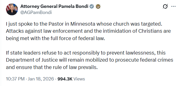 On Sunday a group of anti-ICE leftists led by former CNN anchor Don Lemon stormed the Cities Church in Minneapolis/St Paul and terrorized the assembled congregation. The federal dept of justice is now conducting an investigation that will lead to the indictments of all those who organized and participated in the event.
