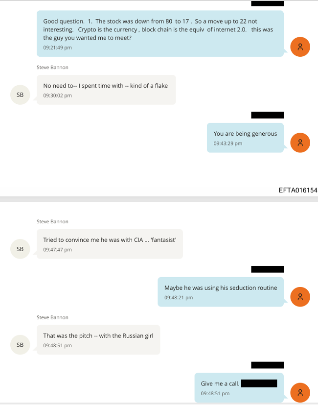 Initially, I saw some Twitter accounts attempt to defend Steve Bannon by saying Epstein did all the talking in their text exchanges and Bannon was less communicative. However, that only applied to the first batches of files reviewed.  As a few days went along and people started citing files, reading them gives a much more fulsome picture of the relationship.