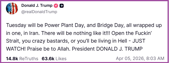 According to Yingst, President Trump is optimistic for a diplomatic settlement and a negotiated deal as early as tomorrow. However, if the deal is not made, the infrastructure within Iran will be systematically destroyed – as noted in a recent Truth Social Post: